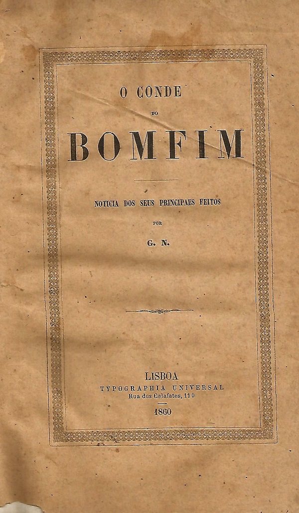 Typ. Universal, Lisboa, 1860, encadernação recente mantendo as capas de brochura, com retrato do Conde do Bonfim, 73 pgs.