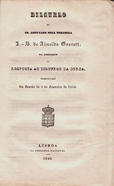 Discurso do Sr. Deputado pela Terceira J.-B. de Almeida Garrett na discussão da resposta ao Discurso da Coroa, pronunciado na Sessão de 8 de Fevereiro de 1840