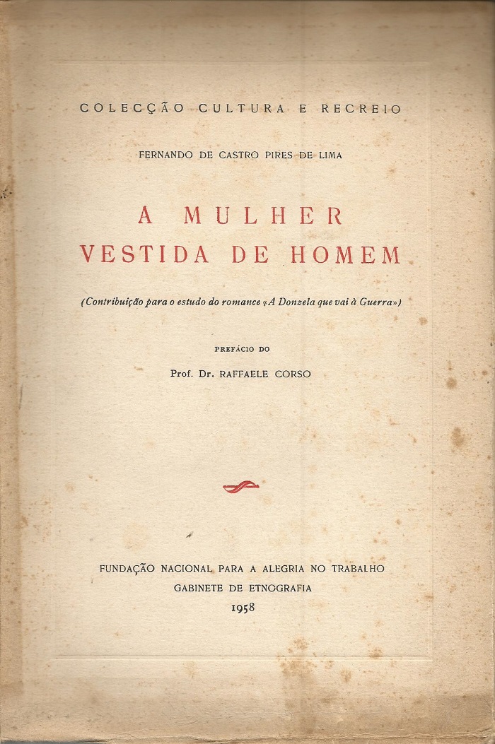 (Contribuição para o estudo do romance “A donzela que vai à Guerra”)FNAT (Gab. de Etnografia), Lisboa, 1958, brochado, 381 pgs.Prefácio de Raffaele CorsoExemplar com as capas sujas e quebradas