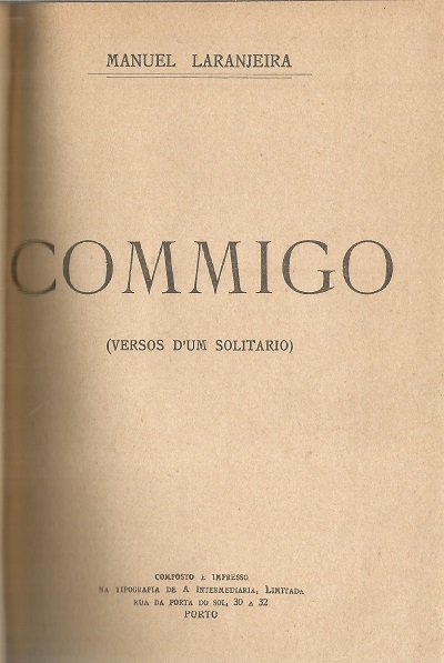 (Versos d’um solitario)Ed. de Autor, Porto, 1923 (2ª edição), encadernação mais recente em material sintético, sem capas de brochura, 138/6 pgs.