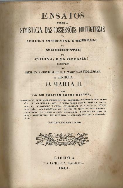 Ensaios/sobre a/ statistica das possessões portuguezas/na/Africa Occidental e Oriental;/ na/Ásia Occidental/na/China, e na Oceania.