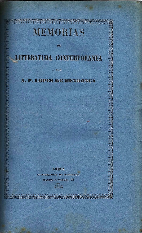 Typ. do Panorama, Lisboa, 1855, encadernação recente mantendo as capas de brochura, 386 pgs.Raro