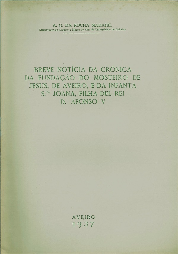Breve notícia da crónica da fundação do Mosteiro de Jesus, de Aveiro, e da Infanta Sta. Joana, Filha del Rei D.Afonso V