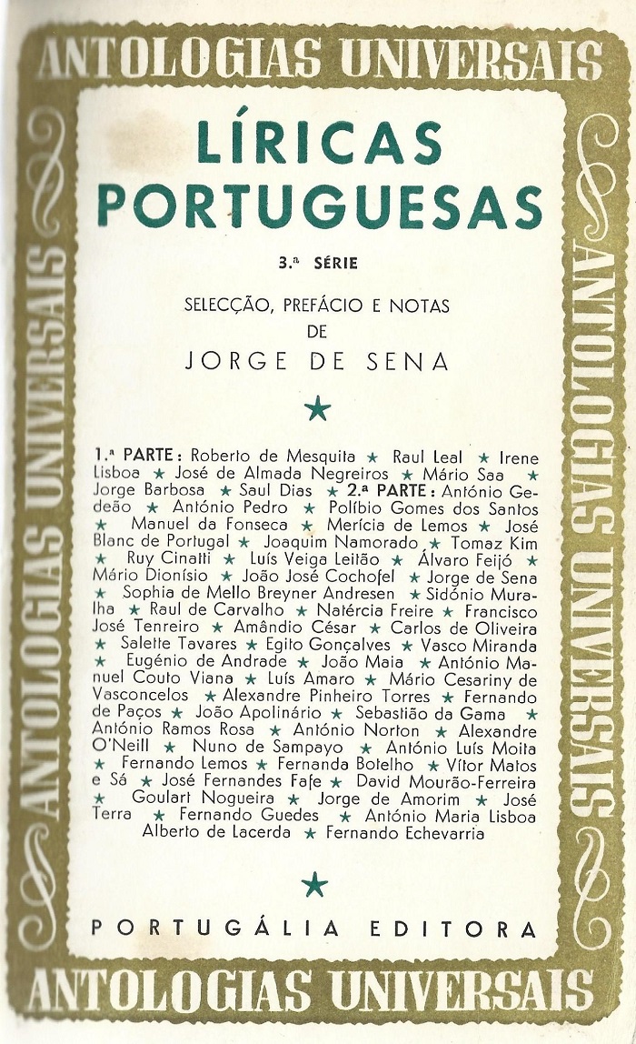 Portugália Ed., Lisboa, sem data, encadernação recente em material sintético, com capas de brochura, col. Antologias Universais, 365/3 pgs.