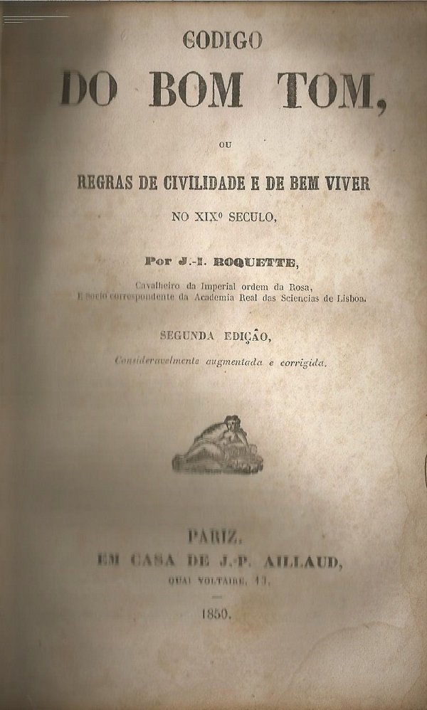 Código do bom tom ou regras de civilidade e de bem viver no XIXº século.