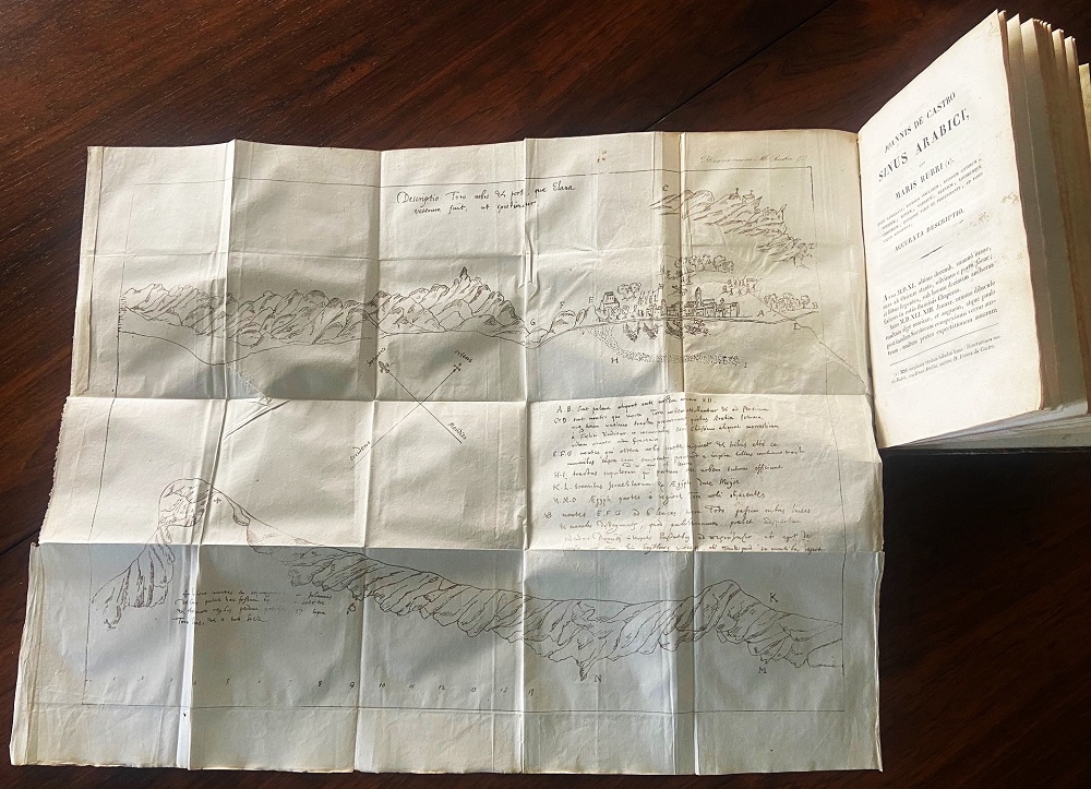 Com as duas gravuras: retrato de D.Joăo de Castro e retrato de D.Estevăo da Gama e com o mapa desdobrável.