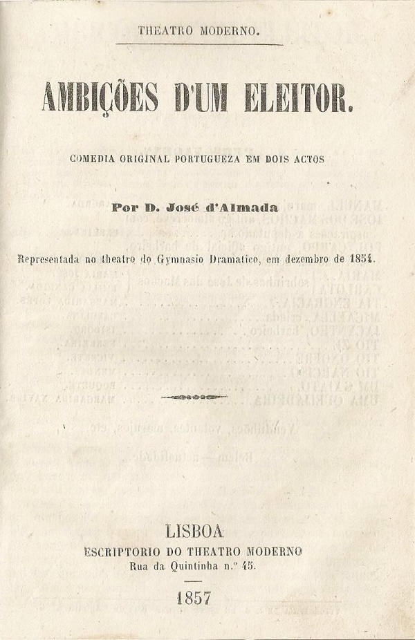 Escriptorio do Theatro Moderno, Lisboa, 1857, boa encadernação recente sem capas de brochura, 43 pgs.
