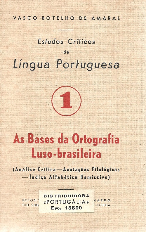 1 – As bases da Ortografia Luso-brasileira(Análise crítica- Anotações filológicas – Índice alfabético remissivo).Ed. de Autor, Lisboa, sem data, brochado, 168/8 pgs.