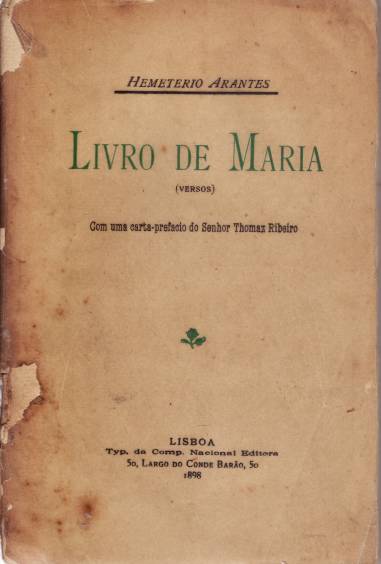 Com uma carta-prefácio do Senhor Thomaz RibeiroLisboa, 1898, brochado, com dedicatória do Autor, 143 pgs. Exemplar com defeito nacapa anterior.
