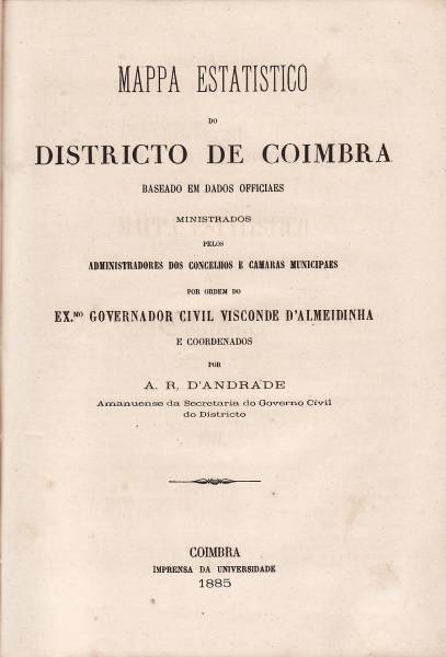 Mappa estatistico do Districto de Coimbra, baseado em dados officiaes ministrados pelos administradores dos Concelhos e Câmaras Municipais(