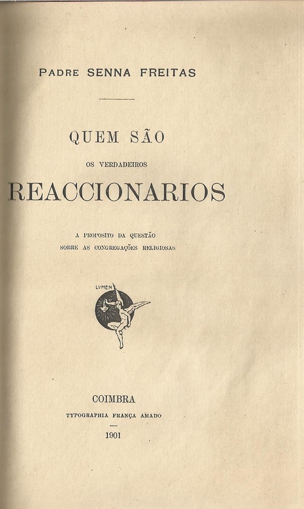 A propósito da questão sobre as congregações religiosasTyp. França Amado, Coimbra, 1901, boa encadernação recente em material sintético, com capas de brochura, 48 pgs.