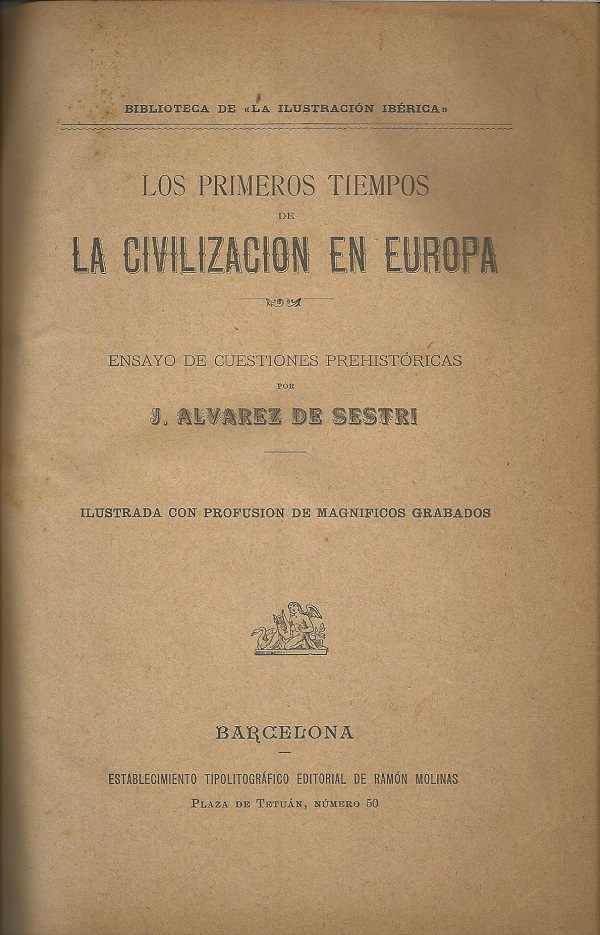 -Ensayo de cuestiones prehistóricasE.T.Ed. de Ramón Molinas, Barcelona, sem data, encadernação coeva e modesta, sem capas de brochura, muito ilustrado, 419 pgs.