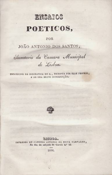 por/João António dos Santos,/Secretário da Câmara Municipal/de Lisboa./Precedidos da biographia do A., escripta por elle proprio,/e de uma breve introducção.