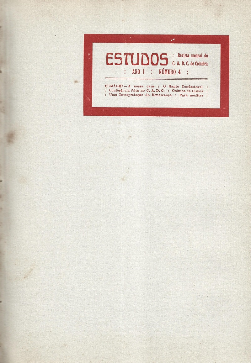 Junto com a revista vai pequeno encarte de 8 páginas que se intitula “União Católica dos Estudantes Portuguêses – Teses aprovadas no Congresso Preperatório realizado em Coimbra, no C.A.D.C., nos dias 31 de Março , 1 e 2 de Abril de 1924”.