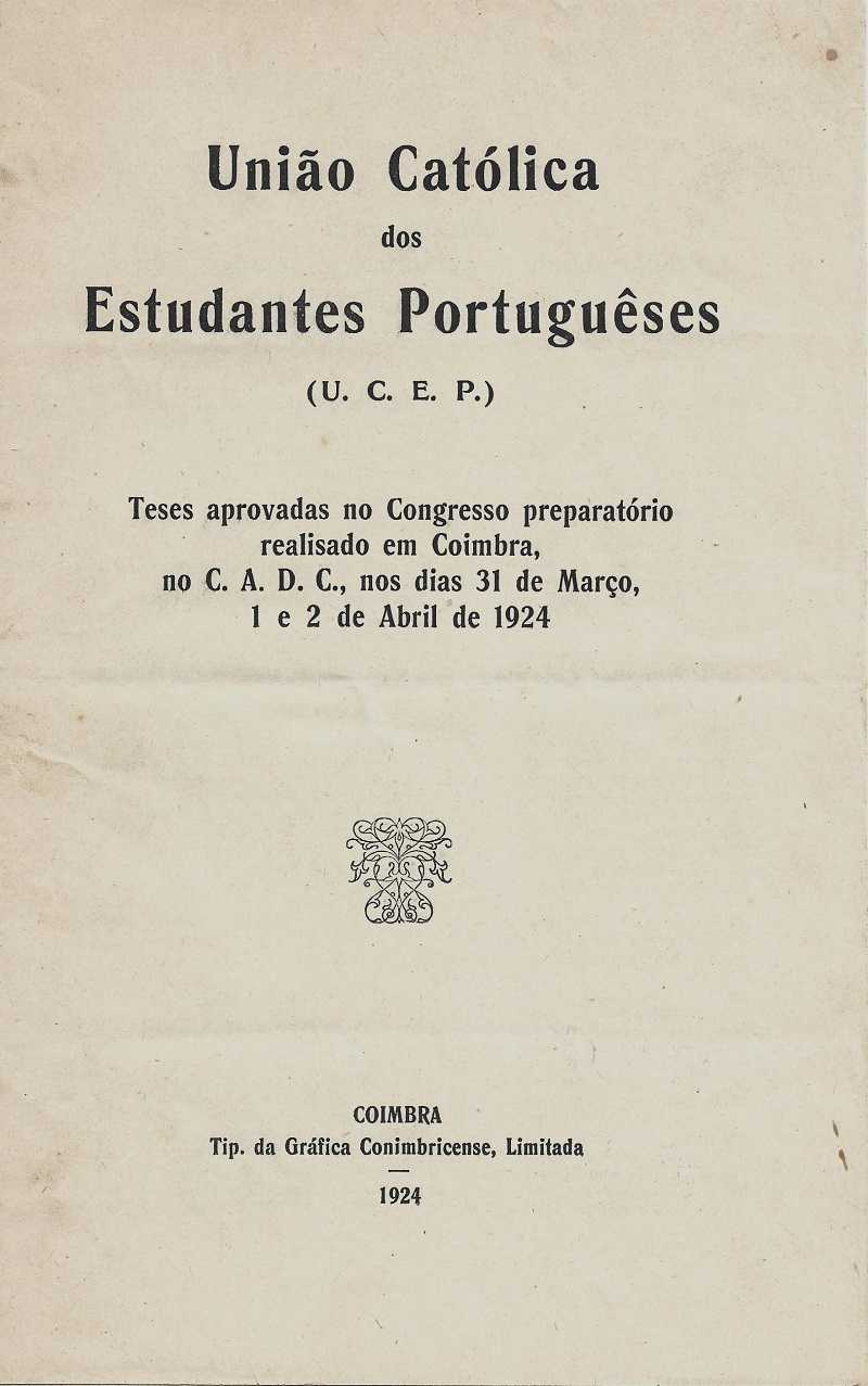 Junto com a revista vai pequeno encarte de 8 páginas que se intitula “União Católica dos Estudantes Portuguêses – Teses aprovadas no Congresso Preperatório realizado em Coimbra, no C.A.D.C., nos dias 31 de Março , 1 e 2 de Abril de 1924”.